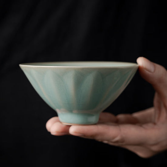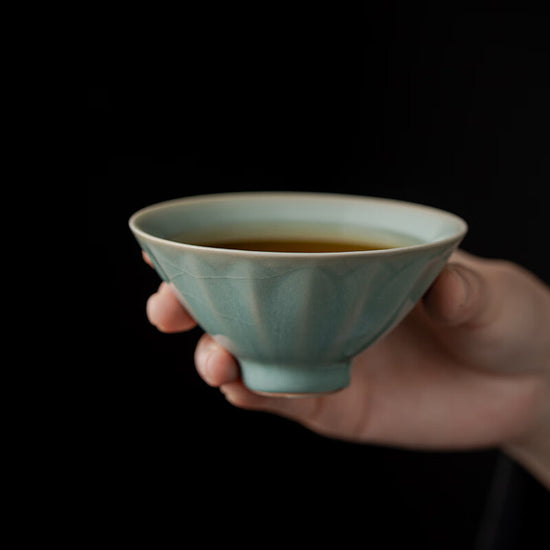 実用性と美しさが融合した、まるで宋代の雅な蓮弁模様の斗笠カップがデザインされました。