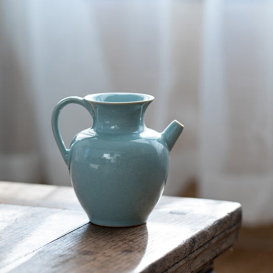 この執壺は越窯青釉瓜稜執壺を復刻したもので、現在は北京故宮博物院に所蔵されています。