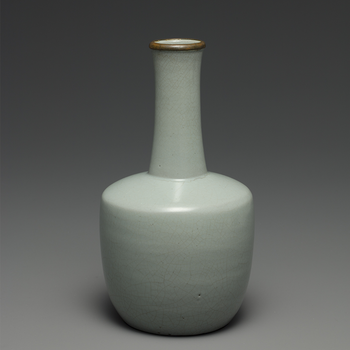 Vendor:伝頌汝磁まめあお釉(まめあおゆう)八方弦紋口瓶 名匠による古代風手作り置物