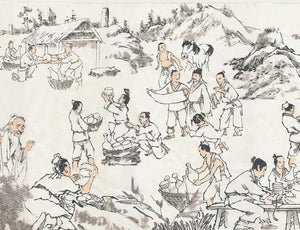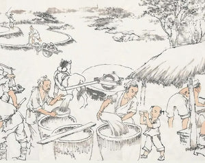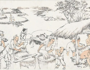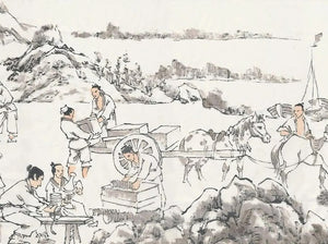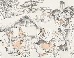料製備:汝窯青瓷釉料的原料多為粗糙礦物,硬度較高,通常需先用石臼碾碎,再置入甕中攪拌均勻。各類細小原料則需分別存放,去除水分後晾乾,並清除雜質,最後過濾後方可使用。