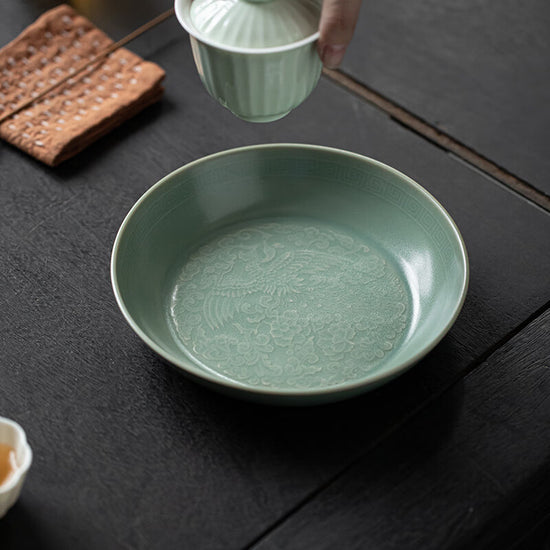 鳳紋皿 果物皿 豆青釉