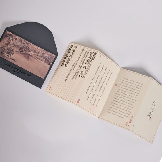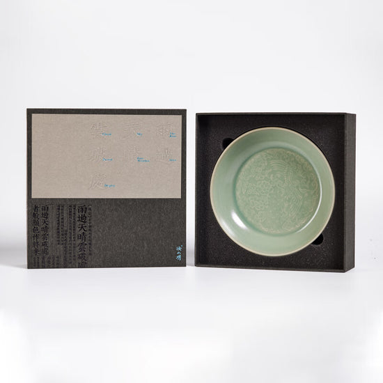 遼代双鳳紋金銀盤  を設計のインスピレーションとして、伝統的な汝窯磁器技術を表現して、72の製作工程を経て、1350の高温で焼成した。